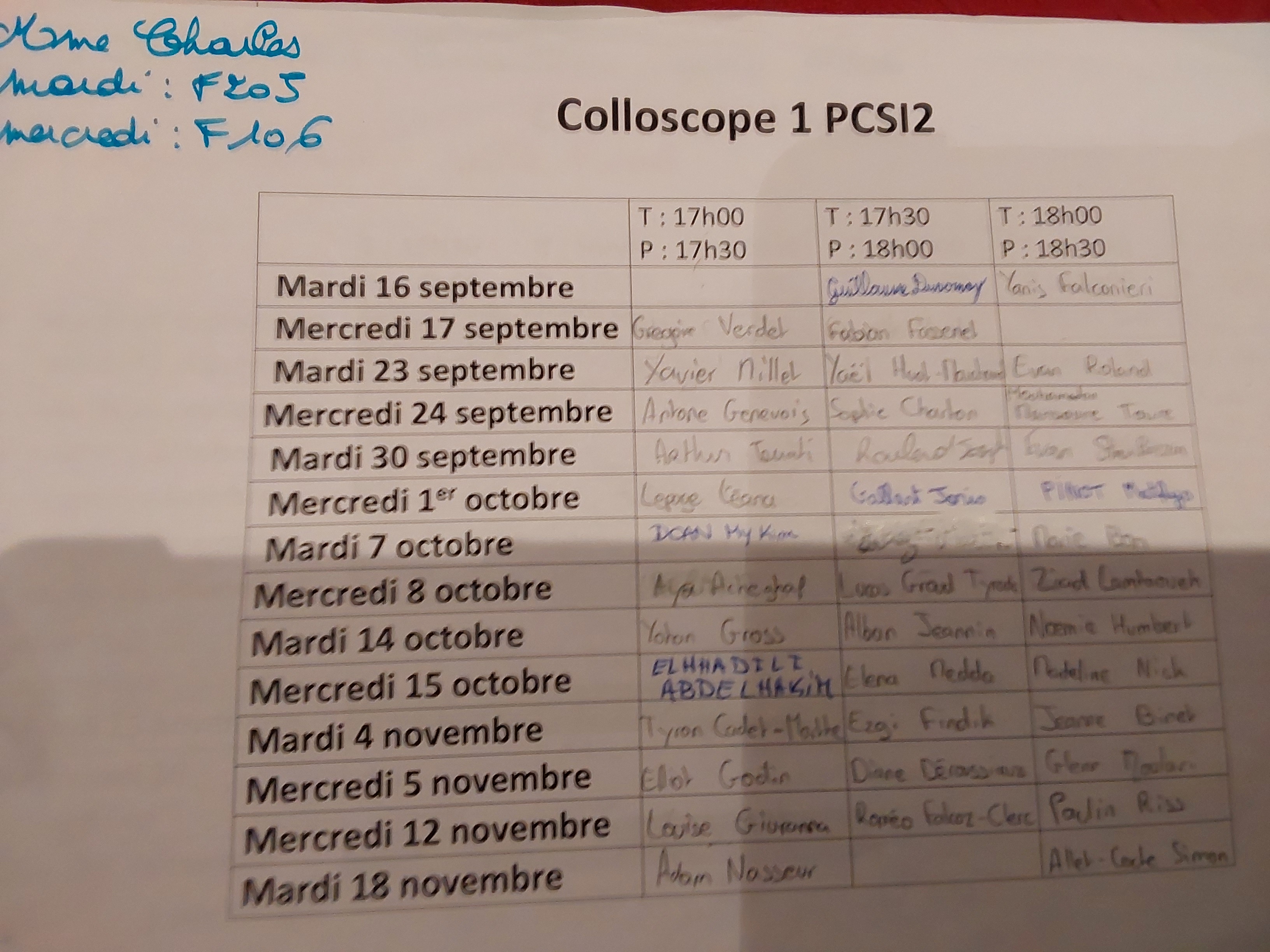 Cours du 2 octobre
